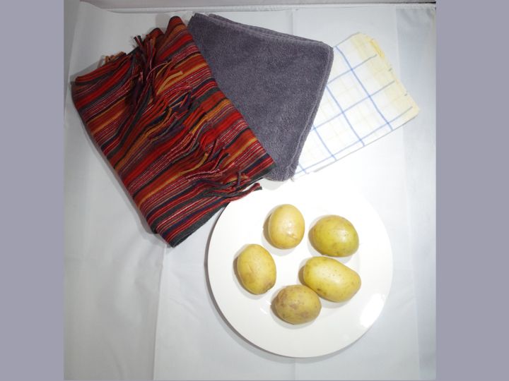- Falte das Tuch mit den Kartoffeln.