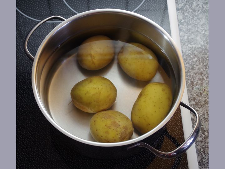 - Koche ½ Kilo (500 Gramm) Kartoffeln weich.